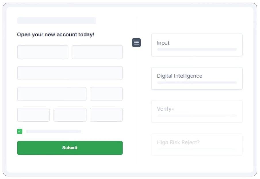 Seamlessly integrate compliance, fraud, step-up authentication, and decisioning with custom onboarding workflows that optimize for accuracy. Low latency, powerful infrastructure supports very high volumes with tens of thousands of real-time calculations.